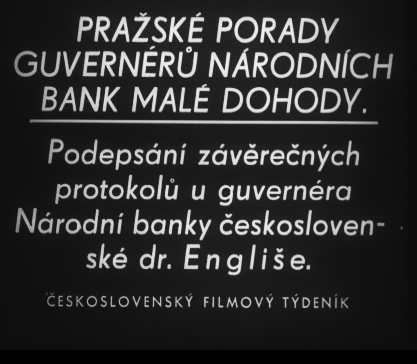 V rámci archivních souborů spravovaných Archivem České národní banky se nalézá také jeden krátký filmový záznam. Vznikl pro dokumentaci mimořádné události v roce 1936, kdy se v Praze uskutečnilo zasedání guvernérů centrálních bank států Malé dohody, tedy Československa, Jugoslávie a Rumunska. Cílem bylo prohloubení malodohodové kooperace i ve finanční a měnové oblasti především kvůli narůstajícímu nebezpečí ze strany nacistického Německa. To na jednu stranu tvrdě vystupovalo vůči Československu a na druhou se snažilo připoutat si k sobě v ekonomické oblasti oba balkánské státy. Film, přestože je dlouhý jen 51 vteřin, zaznamenal slavnostní vyvrcholení třídenní akce, kdy po předchozích dvou dnech jednání byla 28. listopadu 1936 podepsána společná resoluce o prohloubení vzájemného platebního styku.