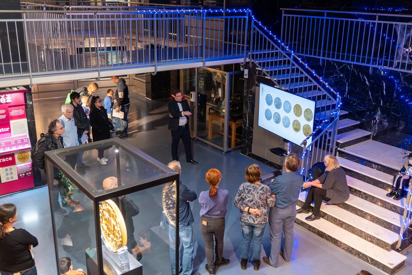 Velký zájem vzbudily také zlatá vysokohmotnostní mince a zlatá cihla ve speciálně vyzdobeném trezoru. Hned dvě komentované prohlídky výstavy Svět bankovek Oldřicha Kulhánka nabídly návštěvníkům jedinečný pohled do zákulisí a odhalily detaily, které běžně zůstávají skryté. Program doplnily i dvě poutavé přednášky na téma temné motivy na bankovkách a mincích, které přinesly zajímavý historický i umělecký kontext. Po celý večer byl k dispozici také speciální stan, kde návštěvníci odhalili, co vše známého i překvapivého svítí pod UV světlem. Víte i Vy jak pod ultrafialovým světlem září například špenát nebo tonik?